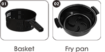 - 3.2L food basket with FDA&LFGB approved non-stick coating.