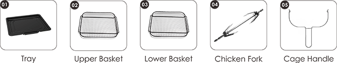 - Easy to clean, dishwasher safe parts(food basket, basket handle, tray, tong) .